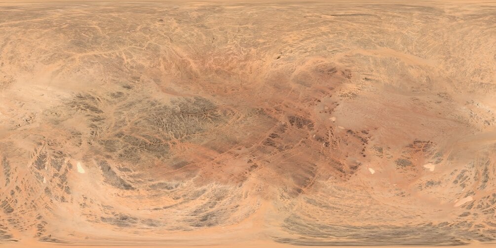 Spherical 360 seamless planet texture map. 9mb png file @ 3800 x 1900 px. Royalty Free License.